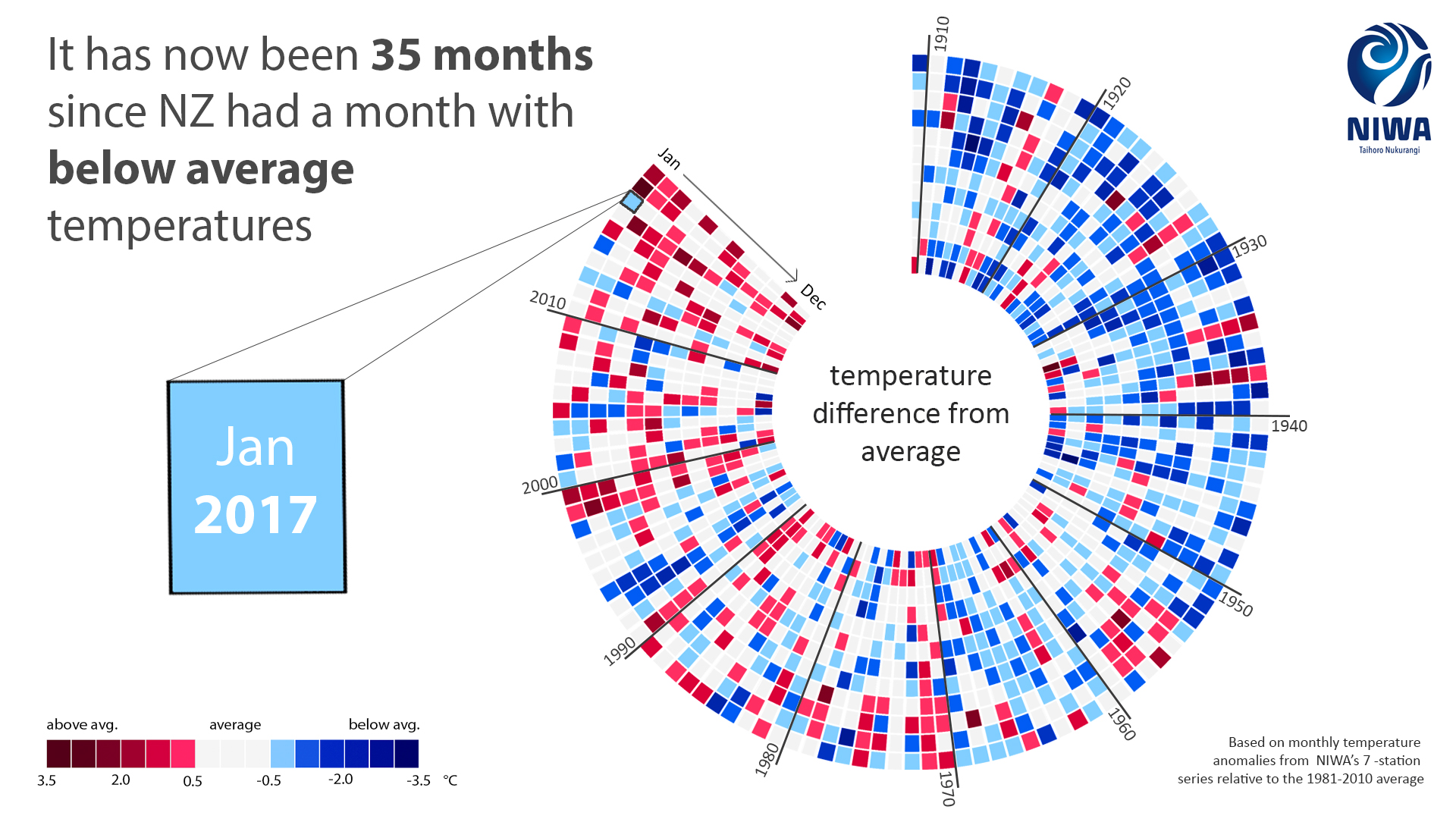“It has now been 35 months since New Zealand had a month with below-average temperatures’, according to the NIWA infographic that accompanies the 2019 annual climate summary.